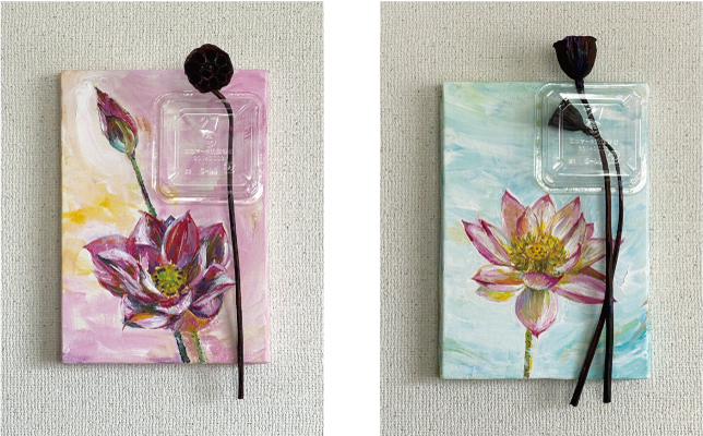 「爪紅蓮(小舞妃)」 27.5×15.8cm アクリル絵具、蓮の花托、プラスチック容器 2026年 ■5,500円(税込) |